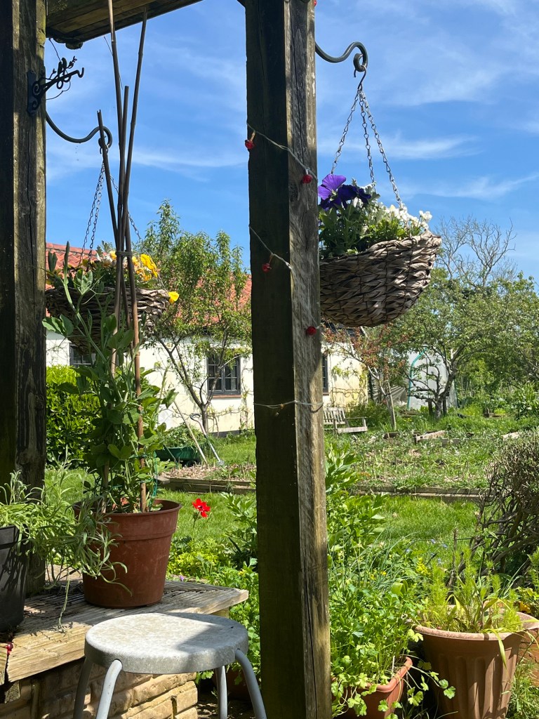 In between weeding overgrown raised beds