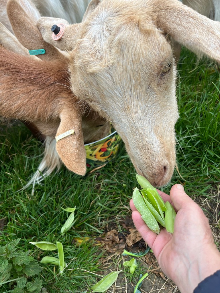 May 28, 2024 by gfreedman2013 We thought Yardie was a boy. The shearer discovered that she is a girl She’s rather long legged and elegant. She might want to be a model! Peas for us, pea pods for the goats Share this: Share on X (Opens in new window) X Share on Facebook (Opens in new window) Facebook Like Loading... Related