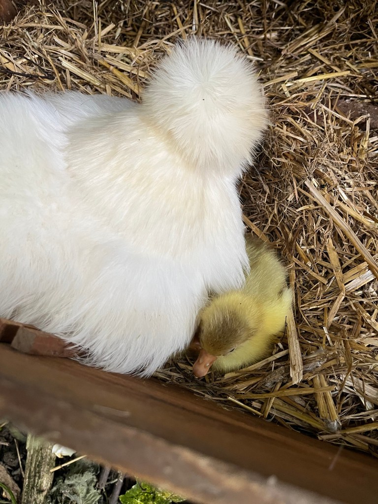 May 31, 2024 by gfreedman2013 Granddaughter called this “the miracle of life” Two goslings hatched overnight under a Silkie hen who sat in the eggs for 35 days There’s one more egg there. Mother will continue to sit on the egg and the goslings keeping the little ones warm Share this: Share on X (Opens in new window) X Share on Facebook (Opens in new window) Facebook Like Loading... Related