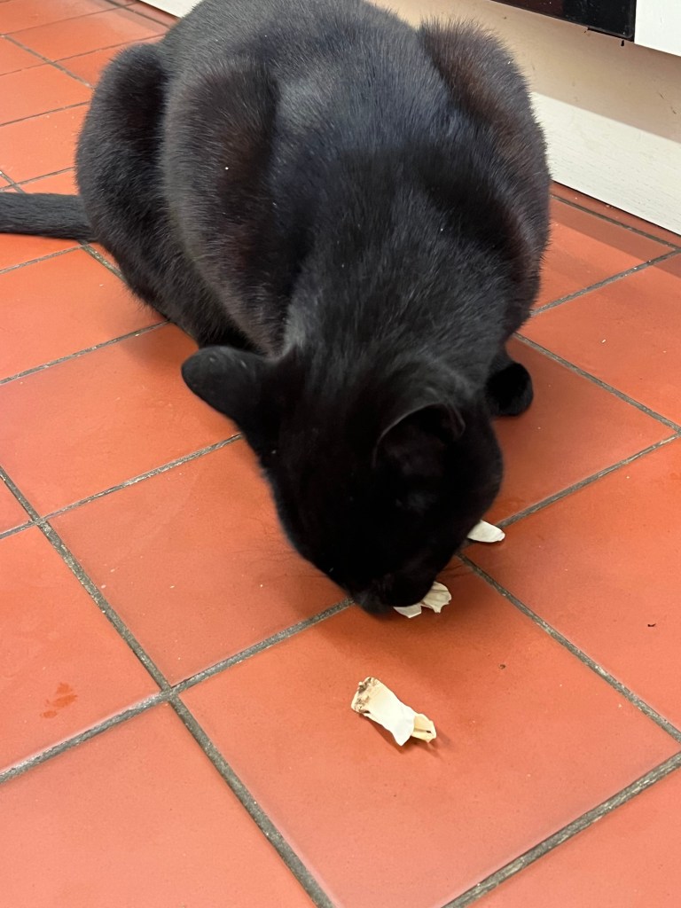 June 4, 2024 by gfreedman2013 Only Nigel! What other cat eats mushroom skin? Mabel sensibly turned her back and went to sleep Share this: Share on X (Opens in new window) X Share on Facebook (Opens in new window) Facebook Like Loading... Related