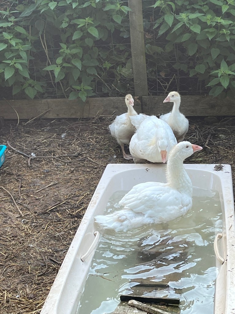 July 18, 2024 by gfreedman2013 New day, new experiences Last night, after I had put the goslings to bed, I righted the upturned bath and filled it with water First one went in to swim and bathe and then it’s sibling joined it. Click below The second gosling struggled to find the exit but managed eventually Share this: Share on X (Opens in new window) X Share on Facebook (Opens in new window) Facebook Like Loading... Related