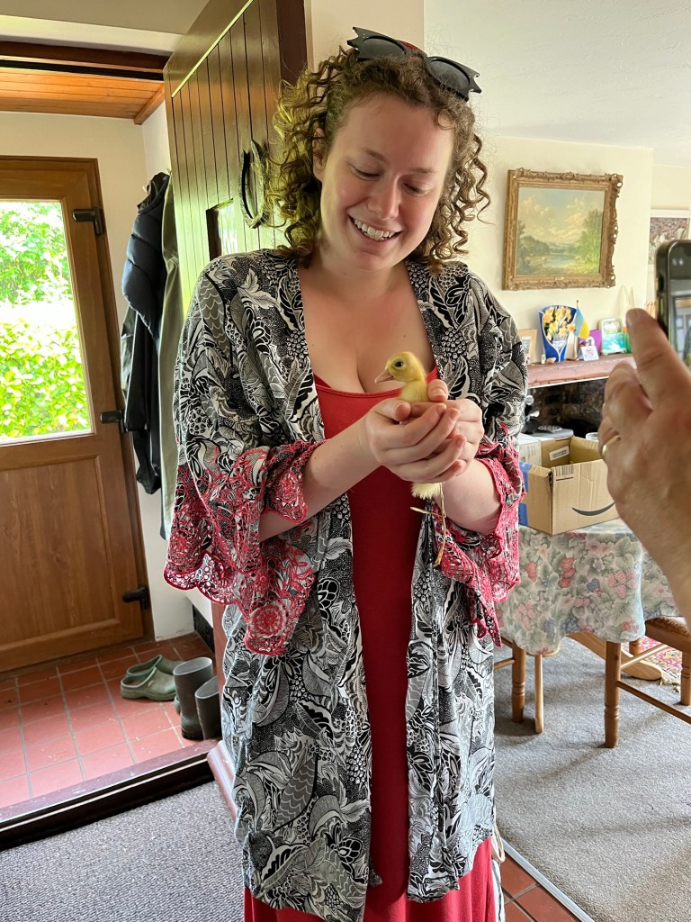 July 28, 2024 by gfreedman2013 A friend and her grown up children came by They had a cuddle with a duckling The daughter said “I’ve always wanted to hold a duckling”. Her wish came true Share this: Share on X (Opens in new window) X Share on Facebook (Opens in new window) Facebook Like Loading... Related