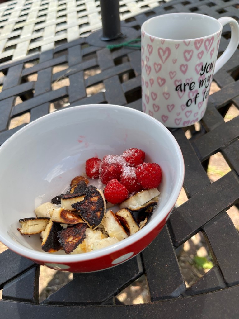 July 29, 2024 by gfreedman2013 A late breakfast al fresco and perhaps a quirky combination Fried halloumi and freshly picked raspberries sprinkled with sugar! Share this: Share on X (Opens in new window) X Share on Facebook (Opens in new window) Facebook Like Loading... Related