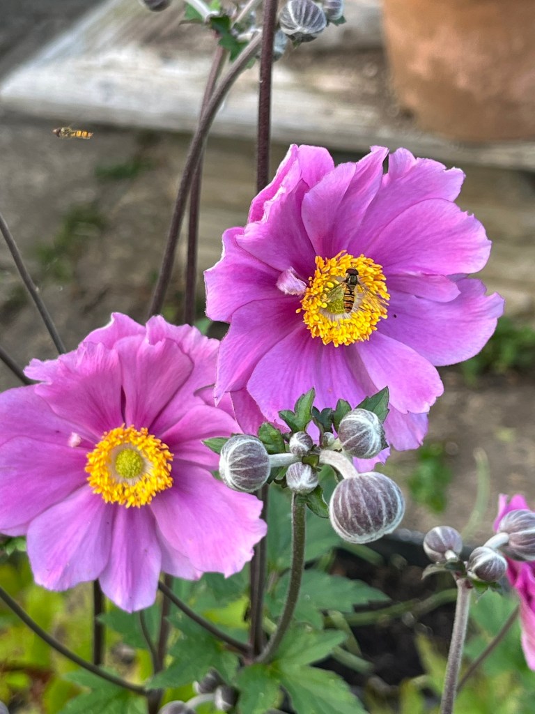 August 2, 2024 by gfreedman2013 The hover flies are enjoying the nectar and pollen of the pink anemones I enjoy the flowers Click below Share this: Share on X (Opens in new window) X Share on Facebook (Opens in new window) Facebook Like Loading... Related