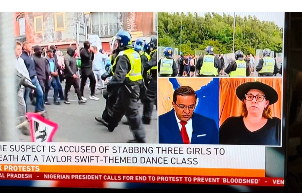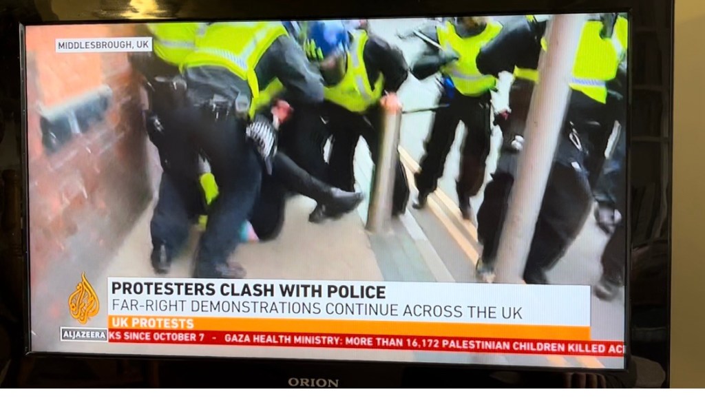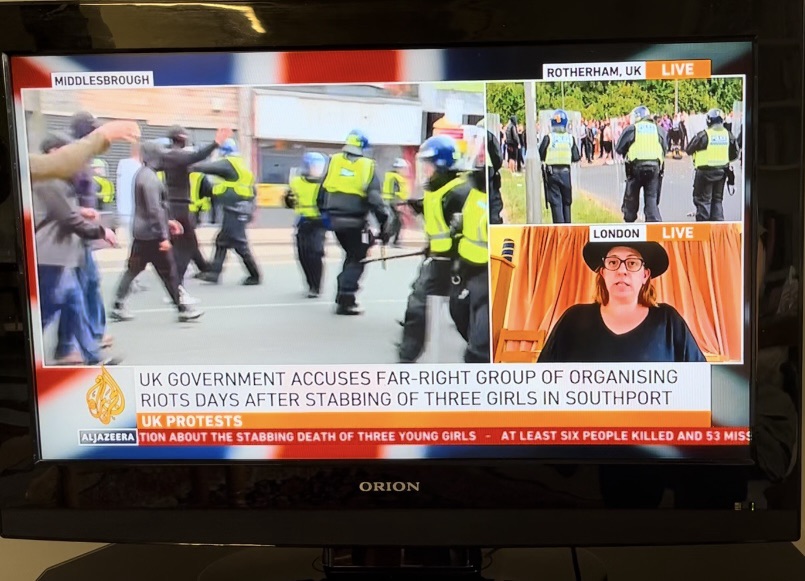 Al Jazeera called daughter to appear on their news hour programme and talk about the terrible riots on our streets. She spoke, the guests ate and I suppose disorder continued – how sad and grim.