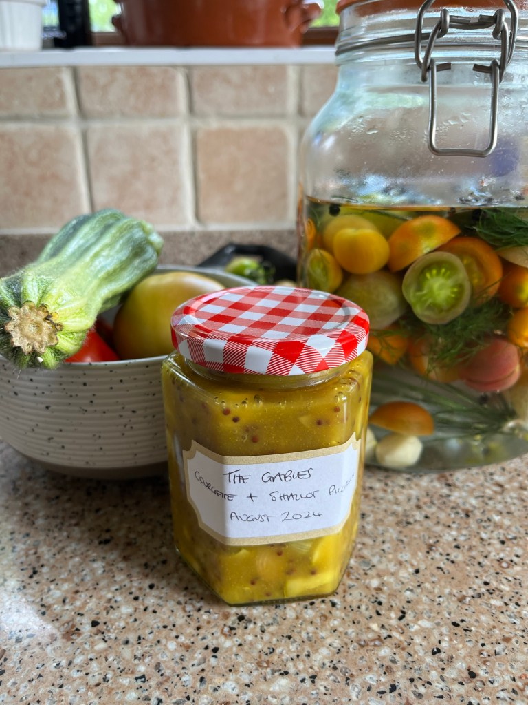 A glut of courgettes yesterday so why not make a sort of piccalilli with courgettes and shallots?