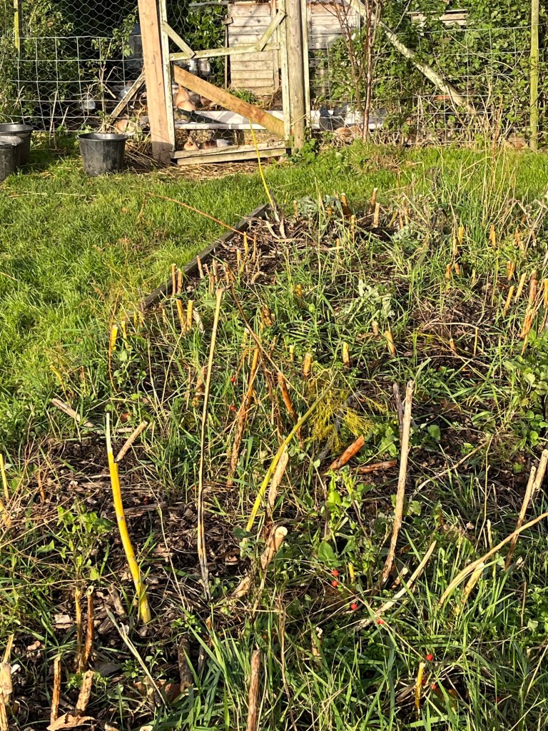 The asparagus ferns have been cut down after the wind tore through themThank you Waitrose. Not only was it on a special offer price but this knitted Father Christmas hat was attached ( I bought 4 bottles!)