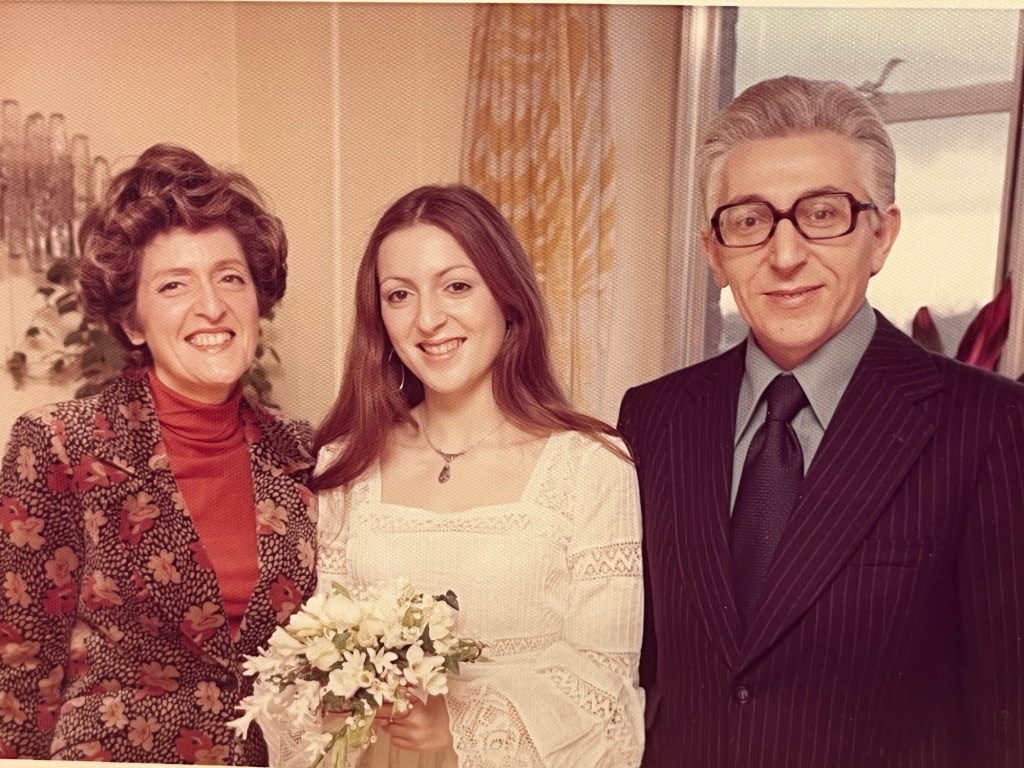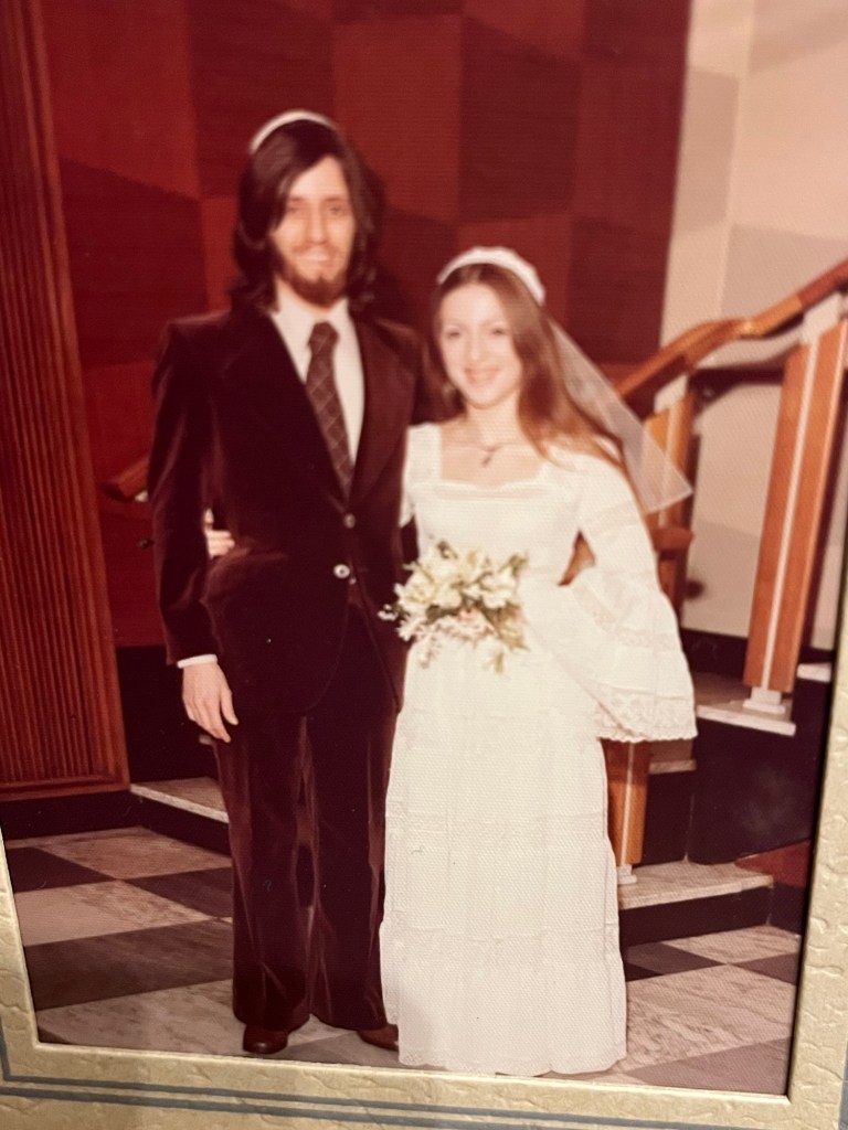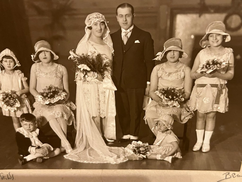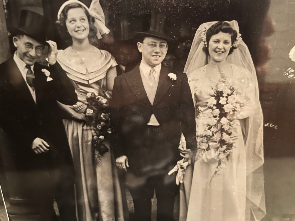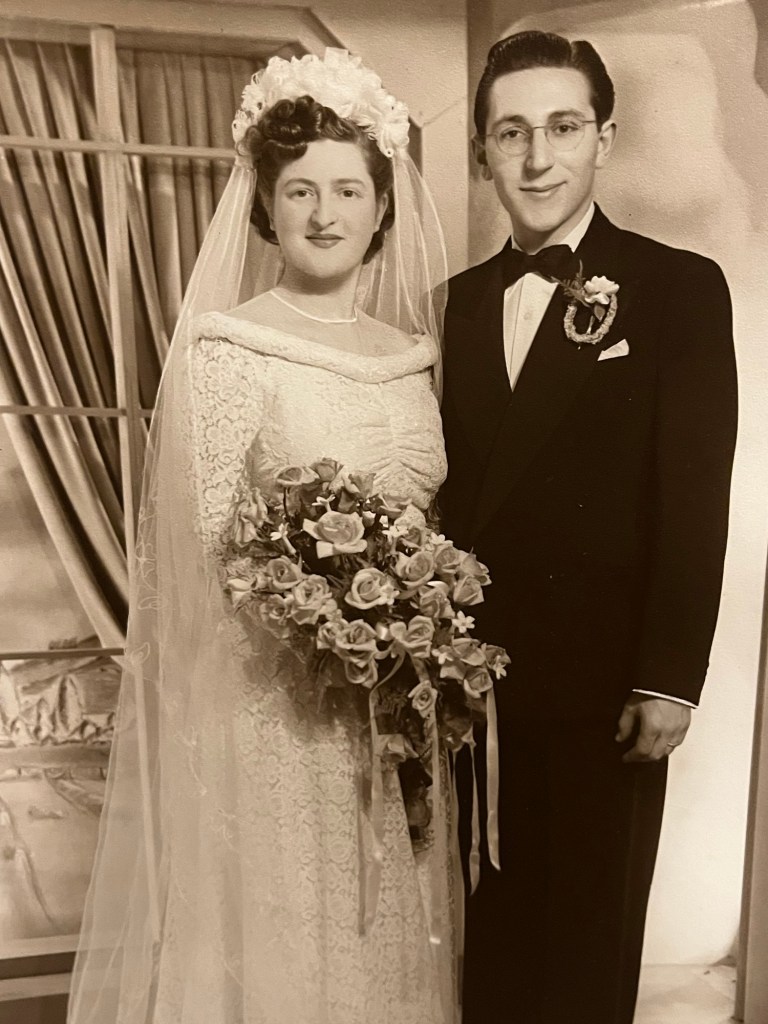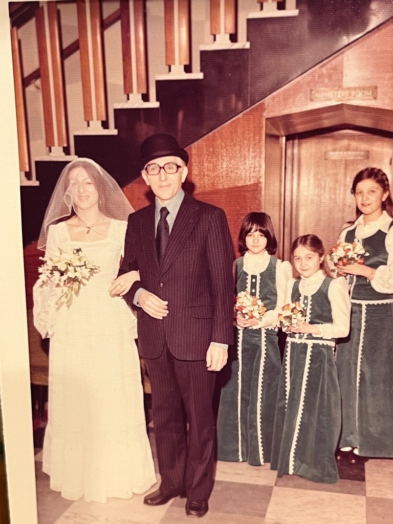 My maternal grandma Anne and grandpa Charles. Jeremy’s paternal grandparents Lily and JohnnyHis maternal grandparents Rose and LewMy parents Sybil and Leslie married at 21 and celebrated 65 years Jeremy’s parents Joan and Louis were married for 66 years Fifty years today – our Golden Wedding! The oldest bridesmaid is now a many times fabulous grandma. I miss them every day – they were only 46 at our marriage This was our 40th celebrated at The Gables with baby granddaughter (yes same dress which I hope to put on later!)