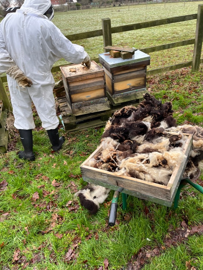 We could knit thousands of woollen bee suits but instead, this afternoon, we put on our thick cotton all in ones with hoods attached and…