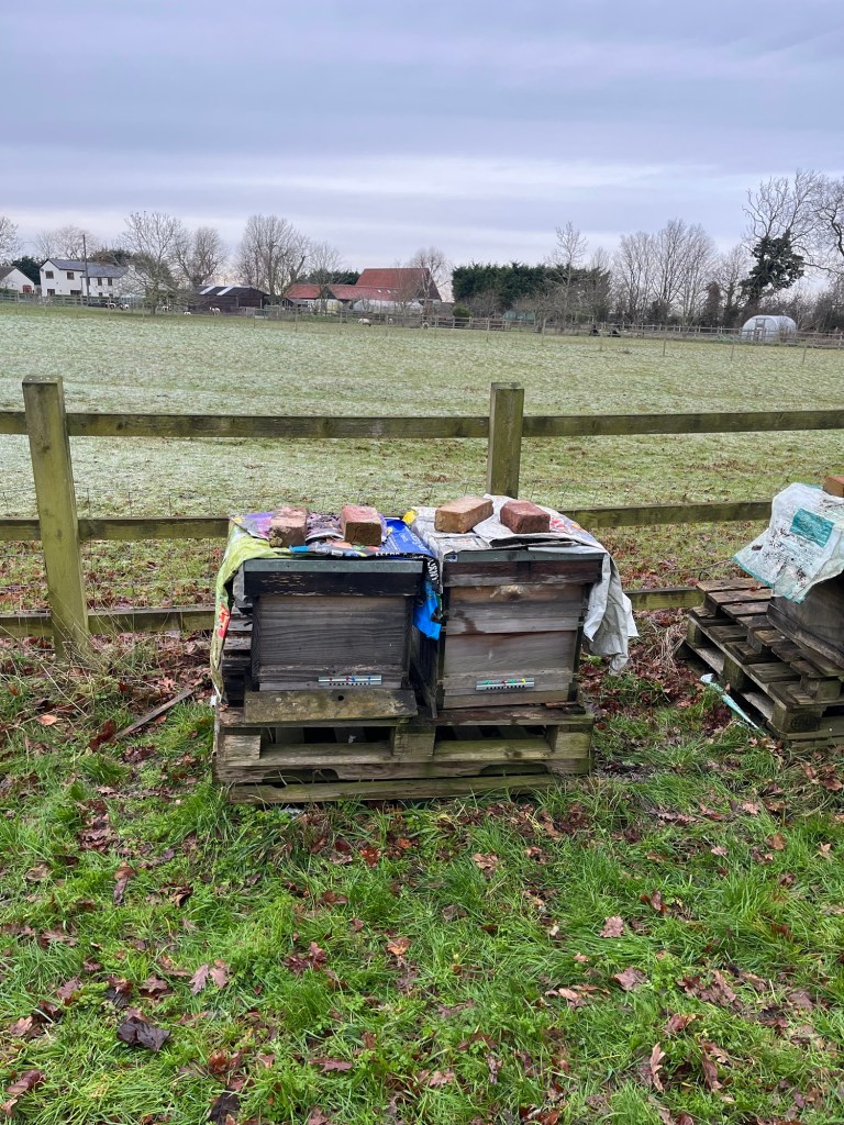 Lifted the lids, removed the rapid sugar feeders and lined the lids with soft, warm, Jacob wool