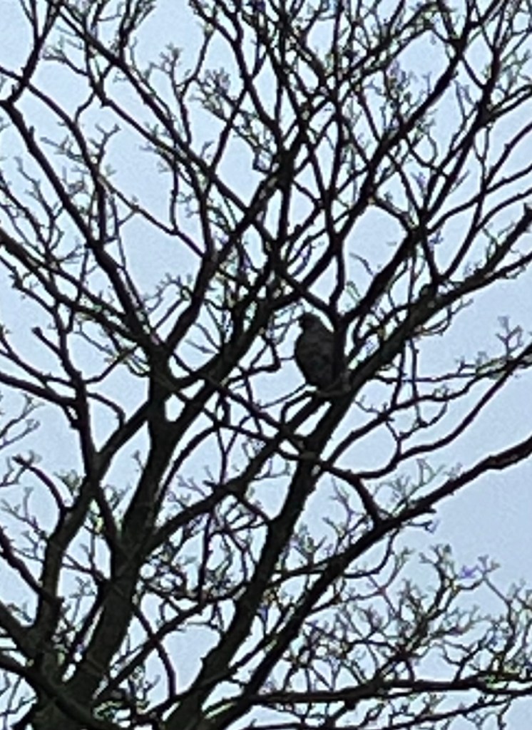In recent weeks I’ve noticed several buzzards roosting in the trees. They usually fly off as I get close to them.