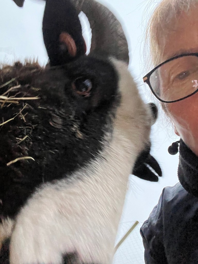 January 20, 2025 by gfreedman2013 Cuddles with sheep Tufty guards the entrance to the barn Yardie looking good and even rubbed noses with me. She’s the sheep who broke a leg hanging from a sheep feeder last year. We thought Yardie was a boy but she is actually a girl. Maybe they are non-binary!!! Share this: Click to share on X (Opens in new window) X Click to share on Facebook (Opens in new window) Facebook Like Loading... Related