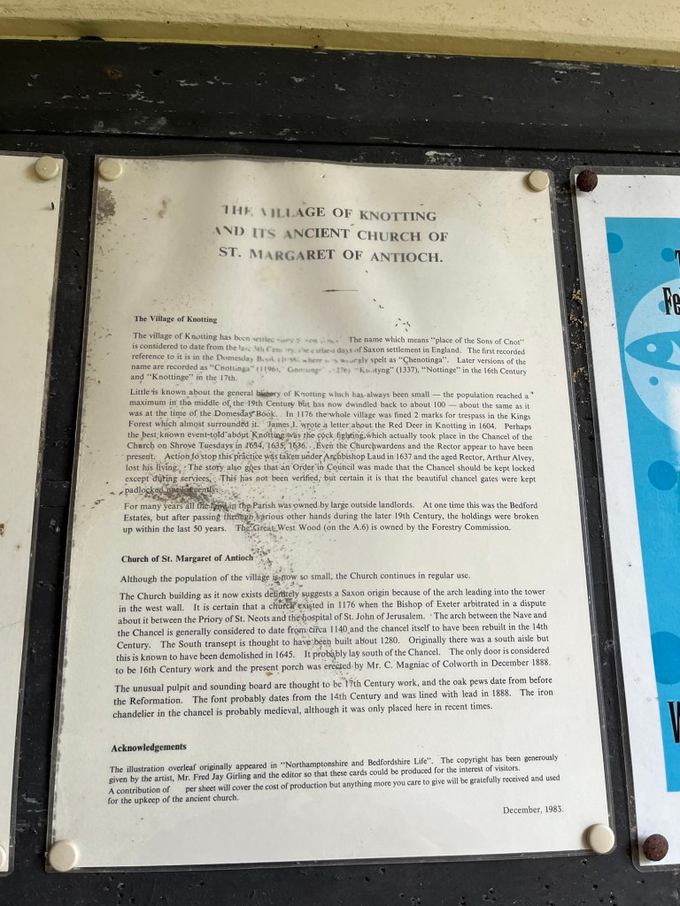 We drove to Knotting and parked outside the historic church of St Margaret of Antioch at Knotting Green