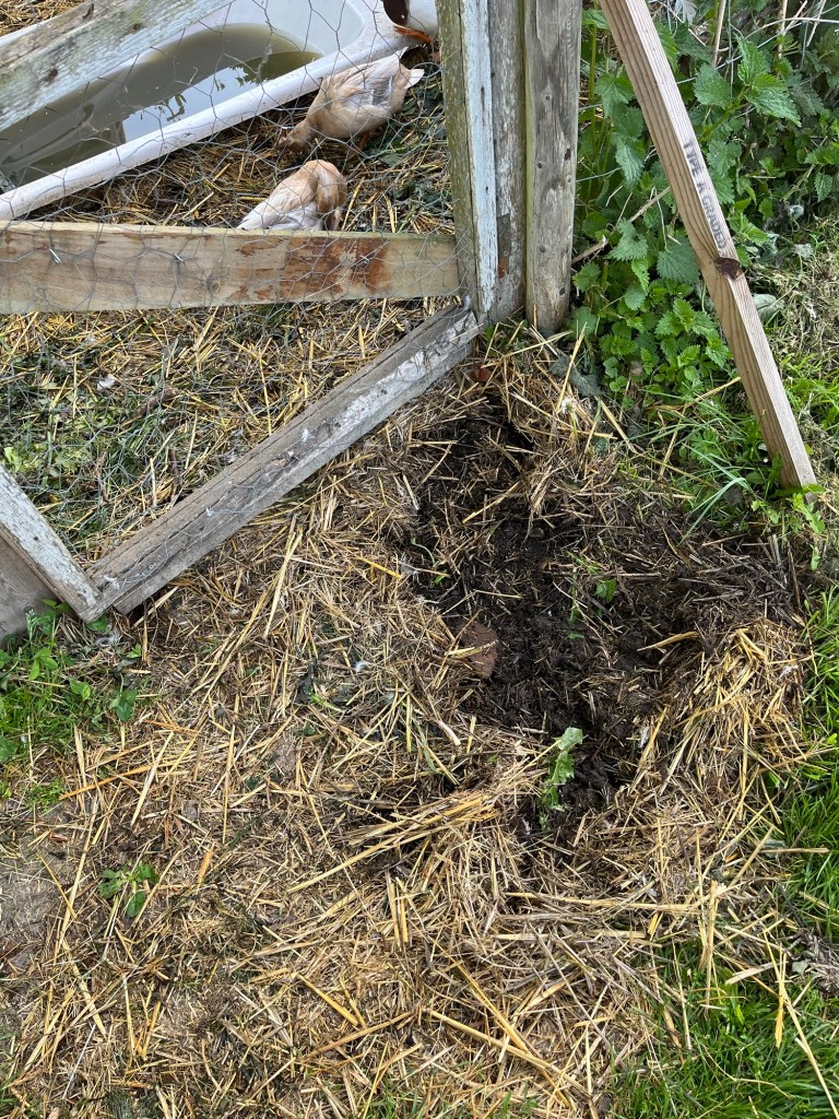 Badgers trying to get into the Silkie run, the duck run, opening feed bins and overturning the goose bucket.