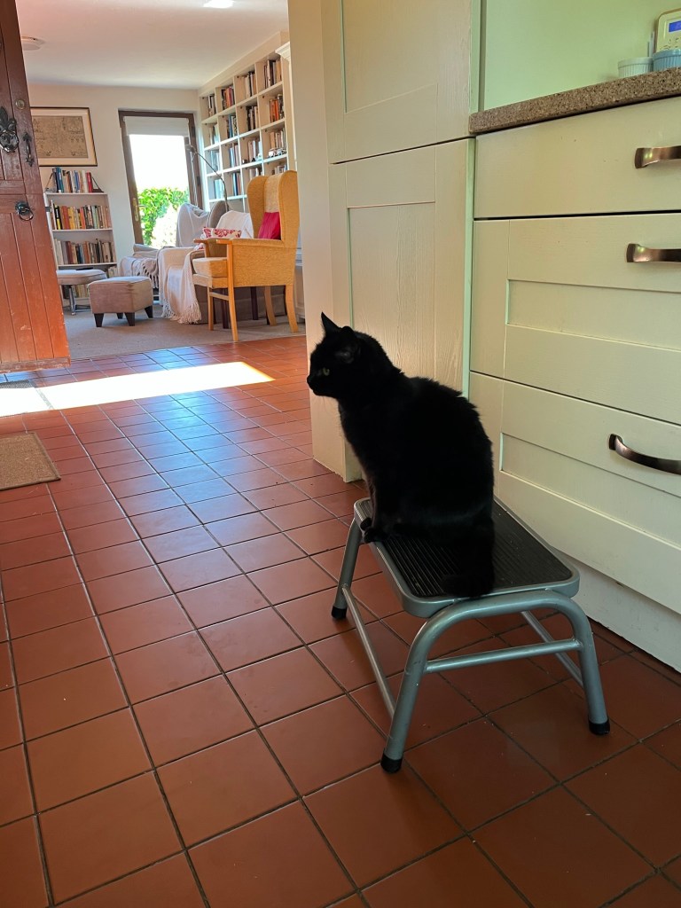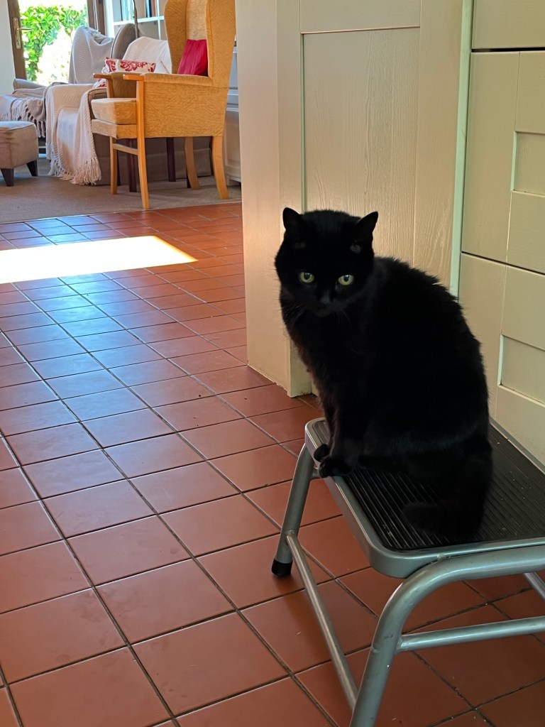 So I gave her a tiny piece of cheese as compensation. Nigel is outside enjoying a pigeon that he caught!