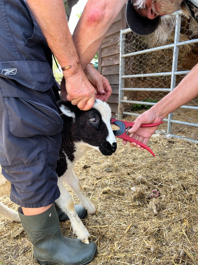 A nearby smallholder came to view the lambs yesterday. she picked out her favourites. We tagged them just now. An ear tag with each lambs unique number and an ear tag with our unique smallholding number.
