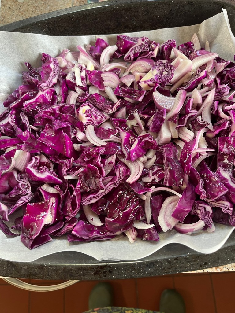 Roast some red cabbage and red onions