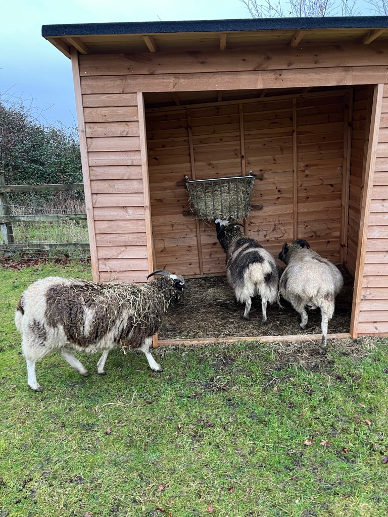 I put some extra hay in the field shelter, trying to encourage the sheep to use that small building as well as the barn. It’s so wet here that I would like to see the livestock going under cover – you can lead a sheep to shelter but you can’t make it stay!