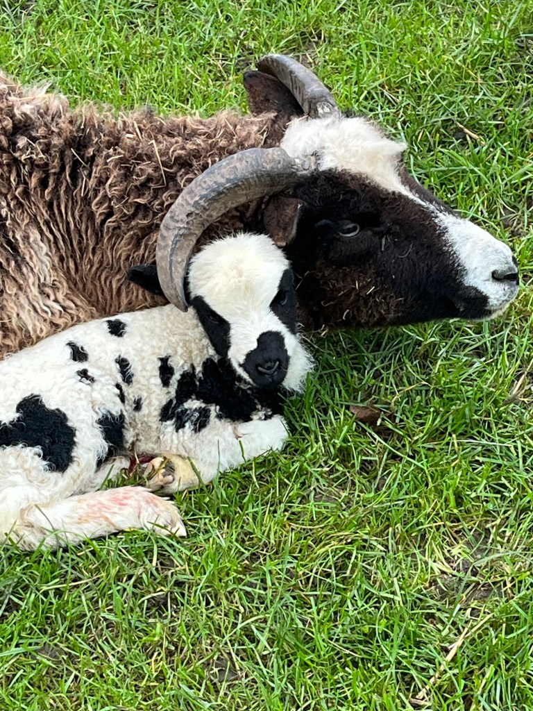 This morning I came out to the sheep barn and saw an afterbirth on the straw. I looked in the field and there was Bridge with a lamb.