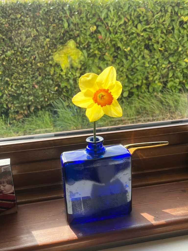 And at Rhyme Time at my weekly session for pre schoolers in the library, one little girl presented me with a freshly picked daffodil.