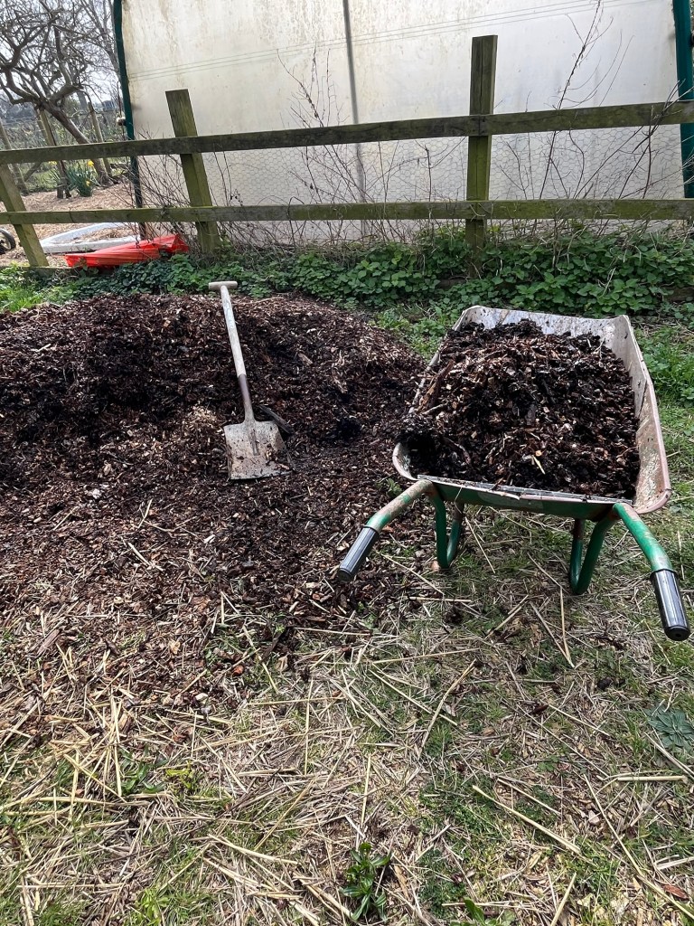 And an hour or so of barrowing wood chip to the larger rhubarb patch to suppress the weeds