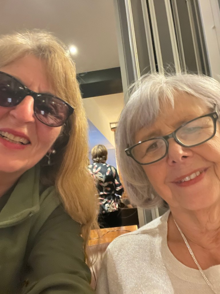 I drove to London this evening to celebrate my schoolfriend’s 70th birthday at a delightful cafe in the company of her very many friends and family