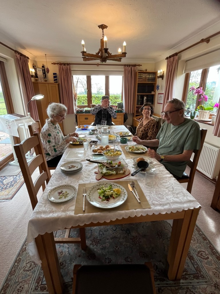 March 22, 2026 by gfreedman2013 Lunch guests. Before eating they took the goats ( with Jeremy supervising) for a walk on their leads. Share this: Share on X (Opens in new window) X Share on Facebook (Opens in new window) Facebook Like Loading... Related