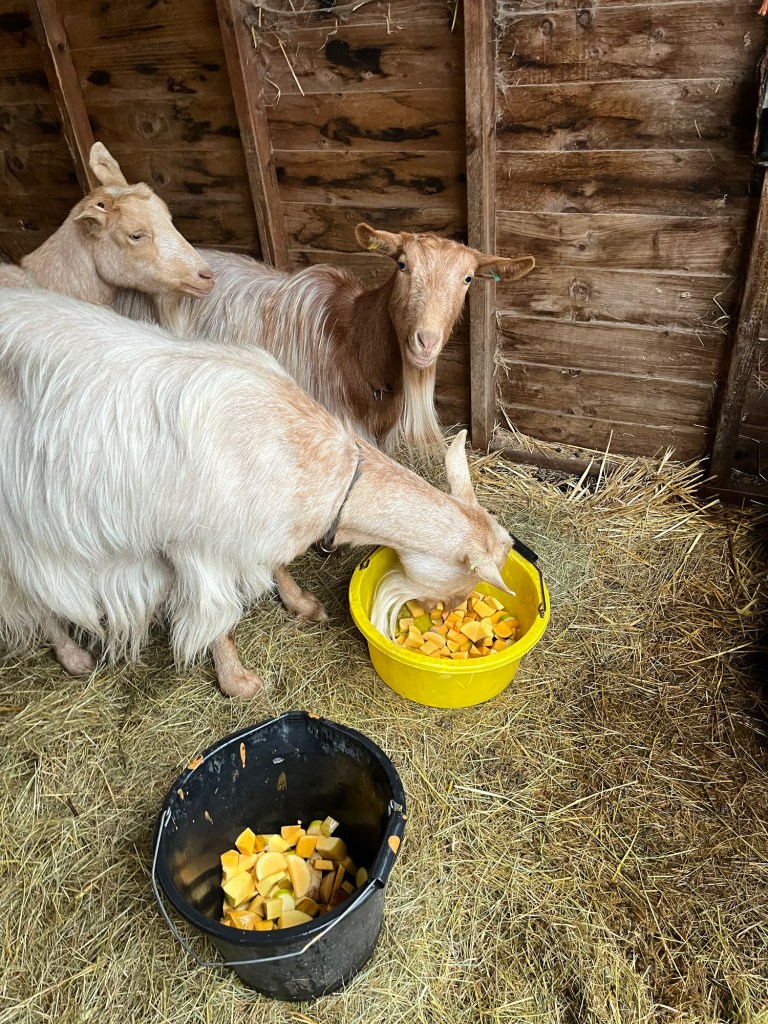 For the other animals and birds it was “meals on wheels” as I delivered them greens and veg