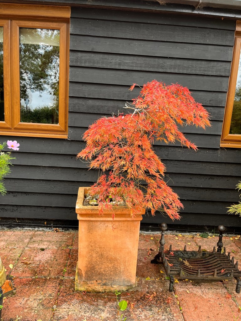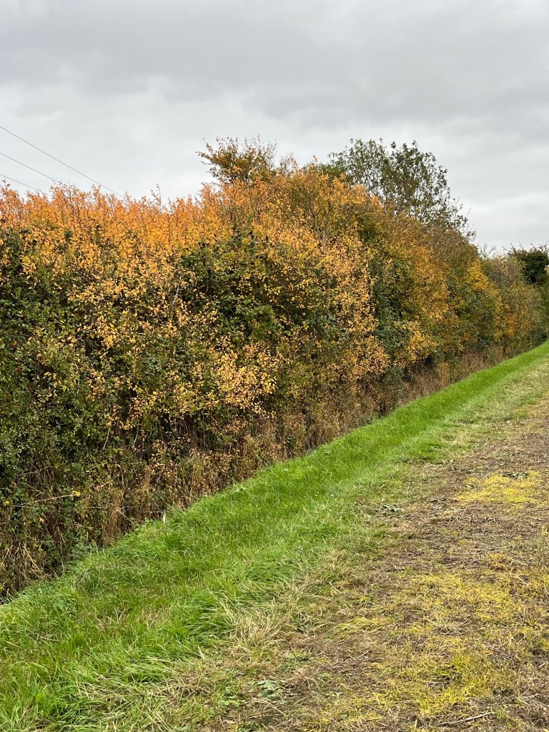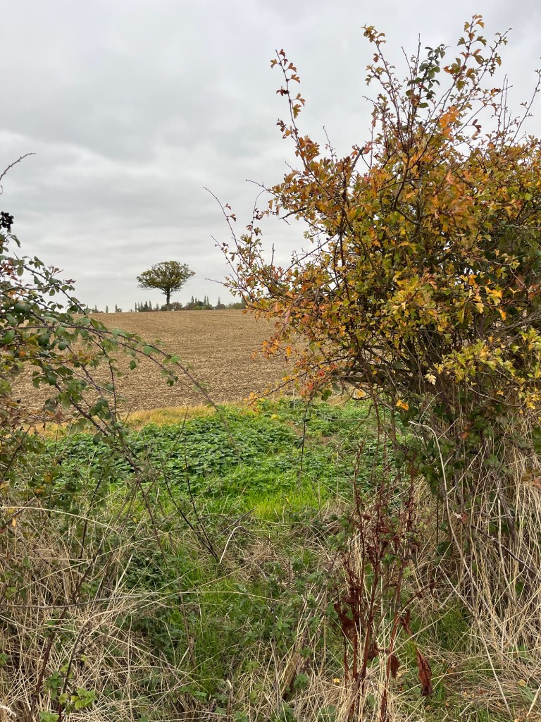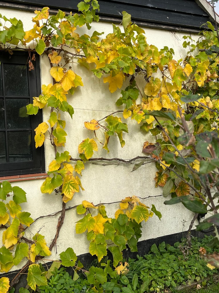 Buckwheat sown in several fields The rich, brown earthThe church tower Home to see the chicks and give them an apple and a pearGrape leaves turning Virginia creeper at its bestChinese lanterns hiding
