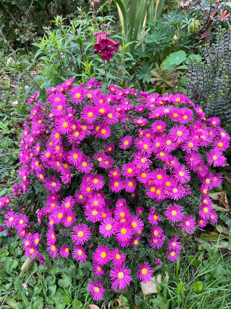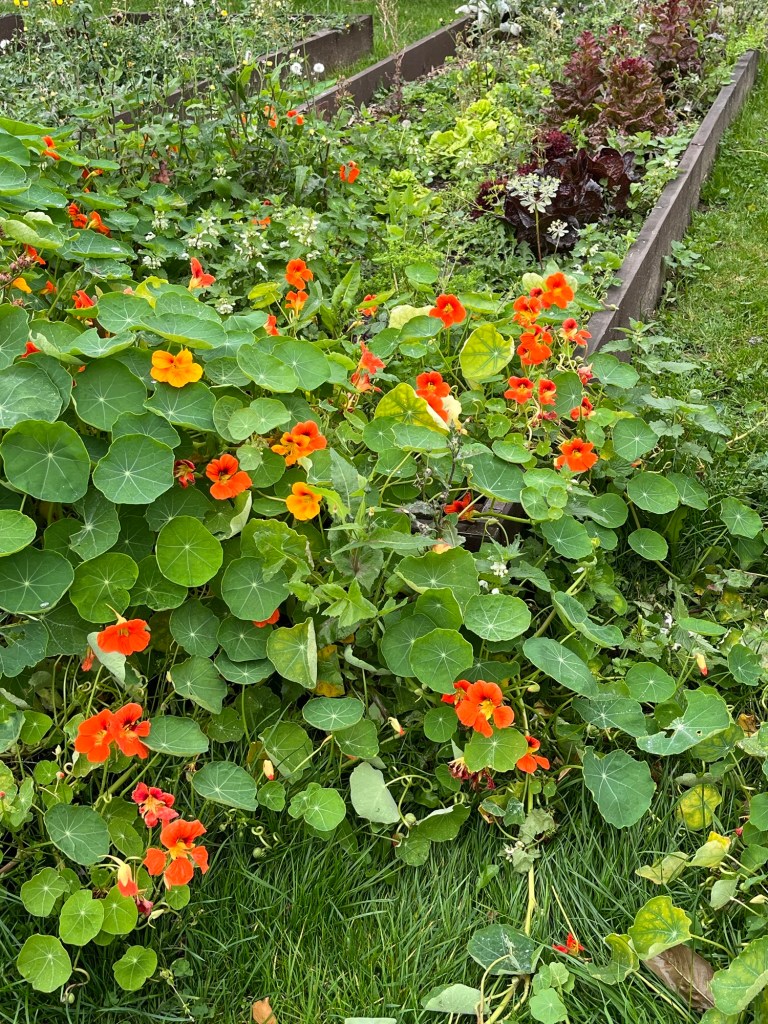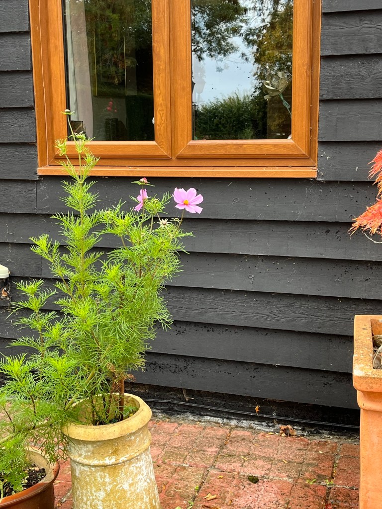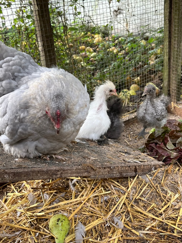 Buckwheat sown in several fields The rich, brown earthThe church tower Home to see the chicks and give them an apple and a pearGrape leaves turning Virginia creeper at its bestChinese lanterns hiding