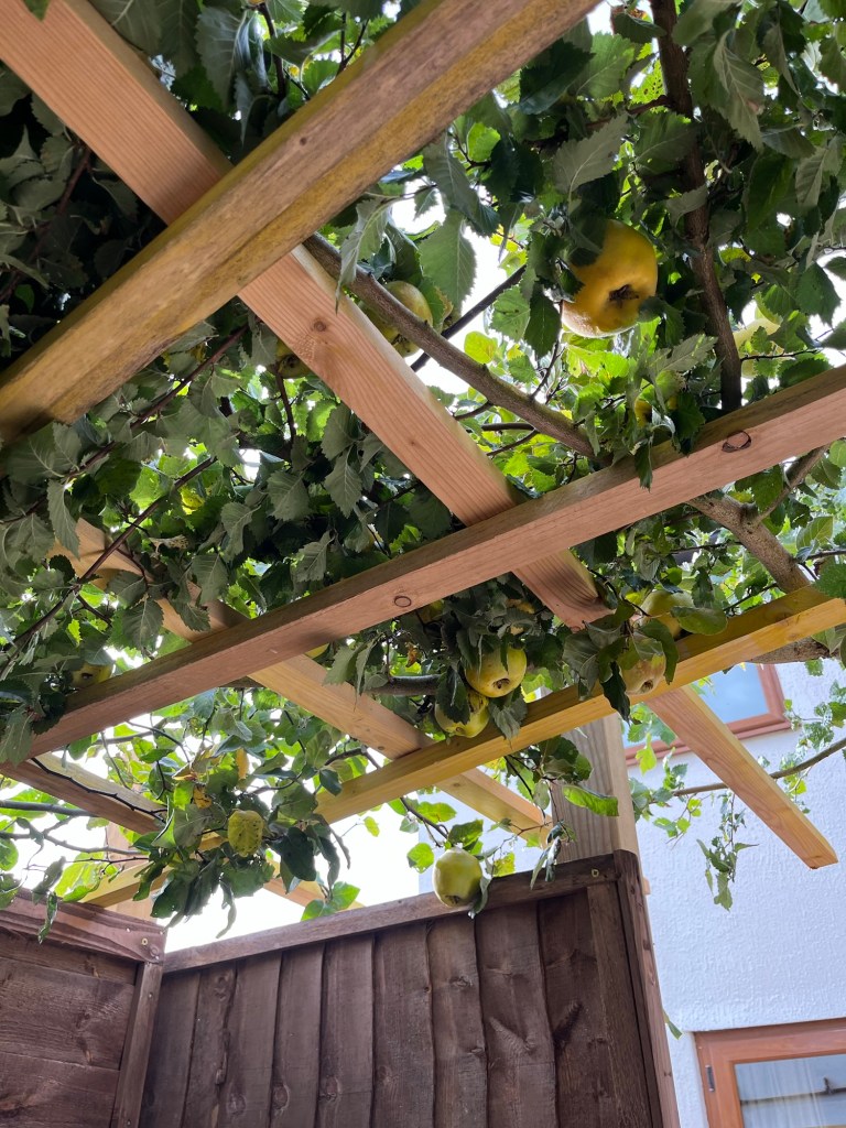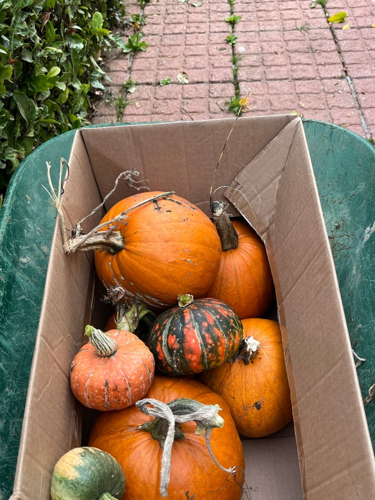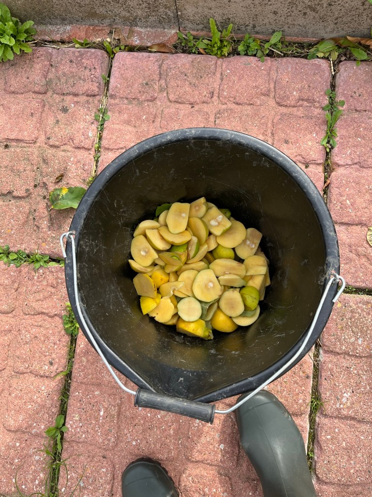 Some of the fallen fruits cut up for the goats