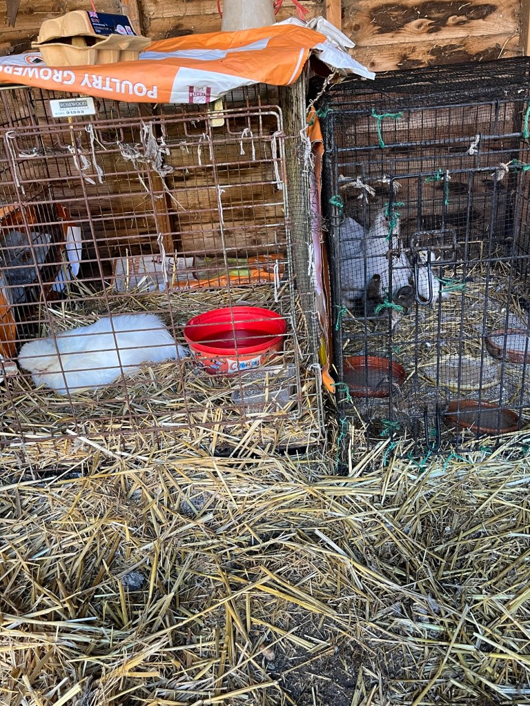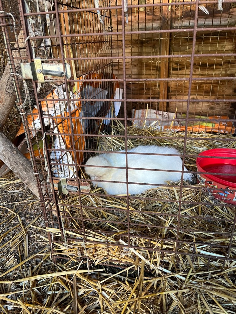 Tufty is keeping him out of the sheep barn. Tufty is trying to maintain his dominance in the flock. Bide your time little Tiny. Your day will arrive.