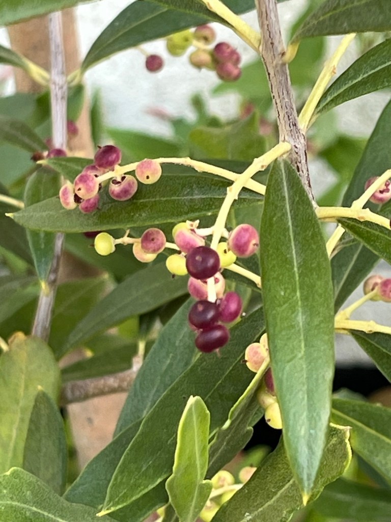 And in the courtyard the small olive tree has produced teeny tiny olives