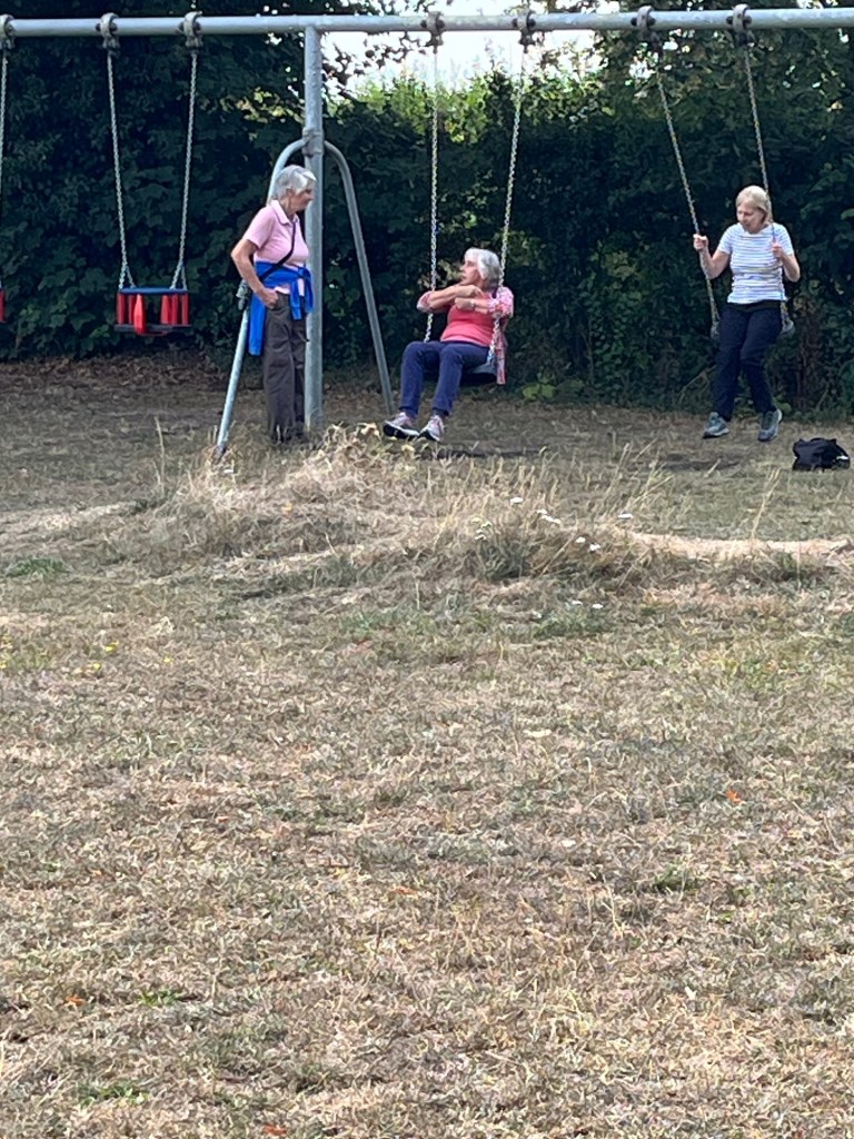 August 22, 2025 by gfreedman2013 - 0 comments All children at heart We stopped in a playground at the end of the four and a half mile walk. Click below