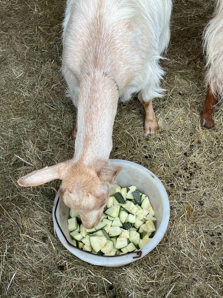 I asked dr Google if sheep and goats eat marrows. Yes was the reply. But them up and feed in moderation