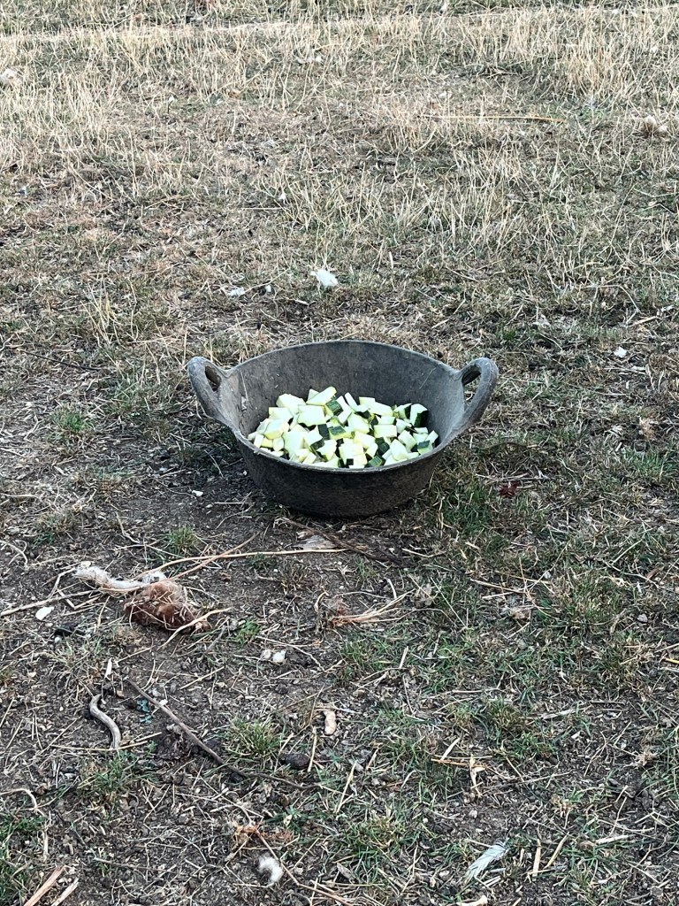 The sheep seemed interested so I cut some more They have abandoned the carefully cut vegetables 😢Willow the goat seems to be interested but not Wisp or Ruth