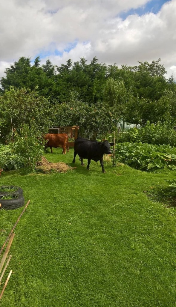 Well this evening daughter reminded me that on this day 8 years ago she and her husband stopped at The Gables to leave us a precious parcel, their son – our first grandchild. They were on their way to a wedding in Liverpool. Somebody (no one has yet confessed) in all the excitement left a gate open. Our clever cows (who we sold during the pandemic) made a run for the garden and started munching on the vegetables