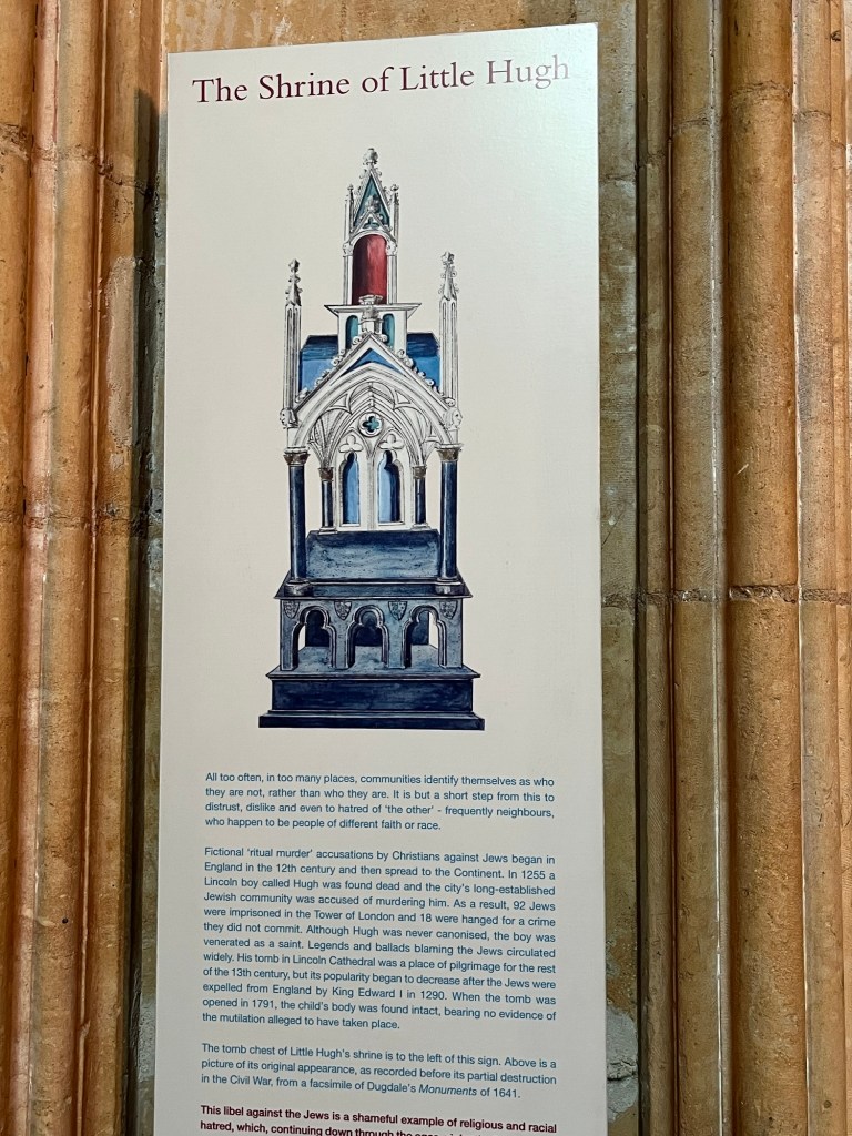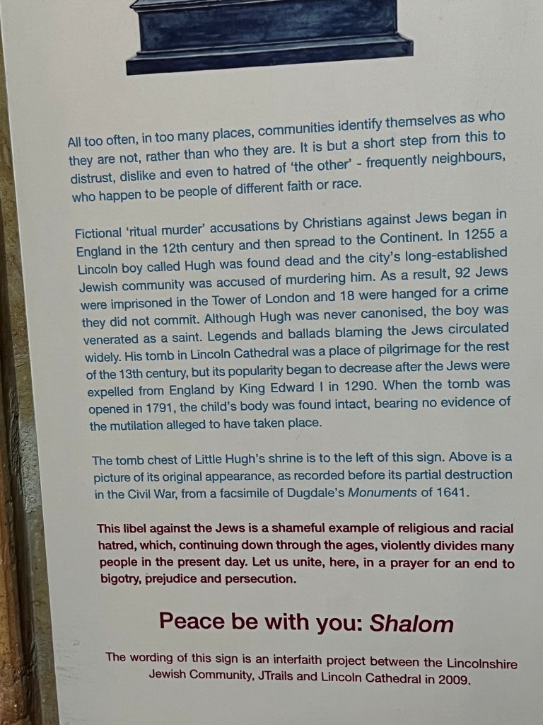 I had more than a passing interest in Lincoln – its cathedral and the second blood libel and myth that was spread from this city in 1244 and whose lies were only publicly refuted by the church in 2009